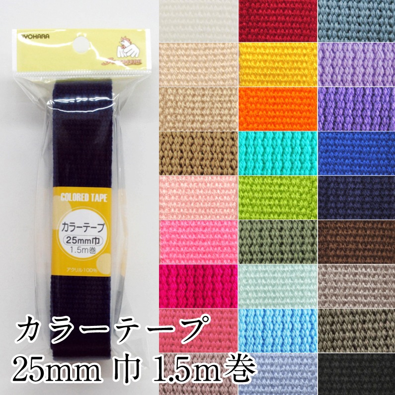 太くて丈夫なアイビーテープ アクリルテープ カラーテープ 25mm 手芸 和洋裁材料 ひも 入園入学