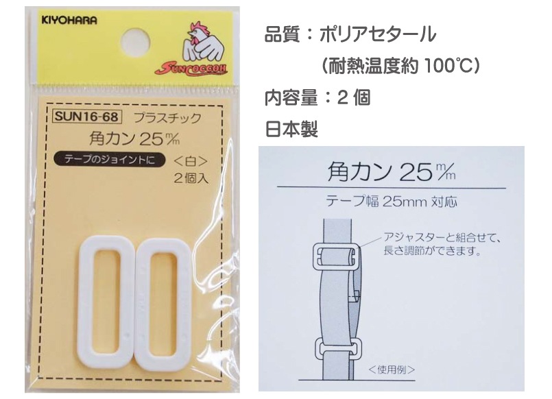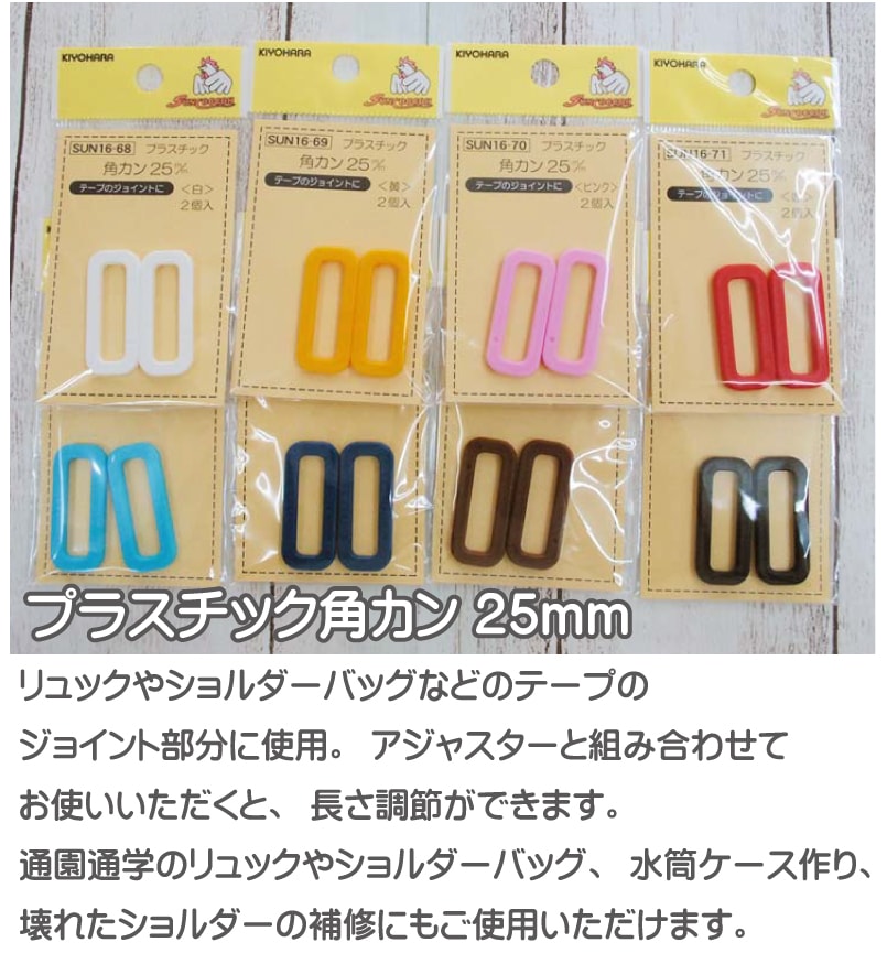 プラスチック角カン 25mm 2個入 入園入学 手芸 裁縫材料 バッグ カバン