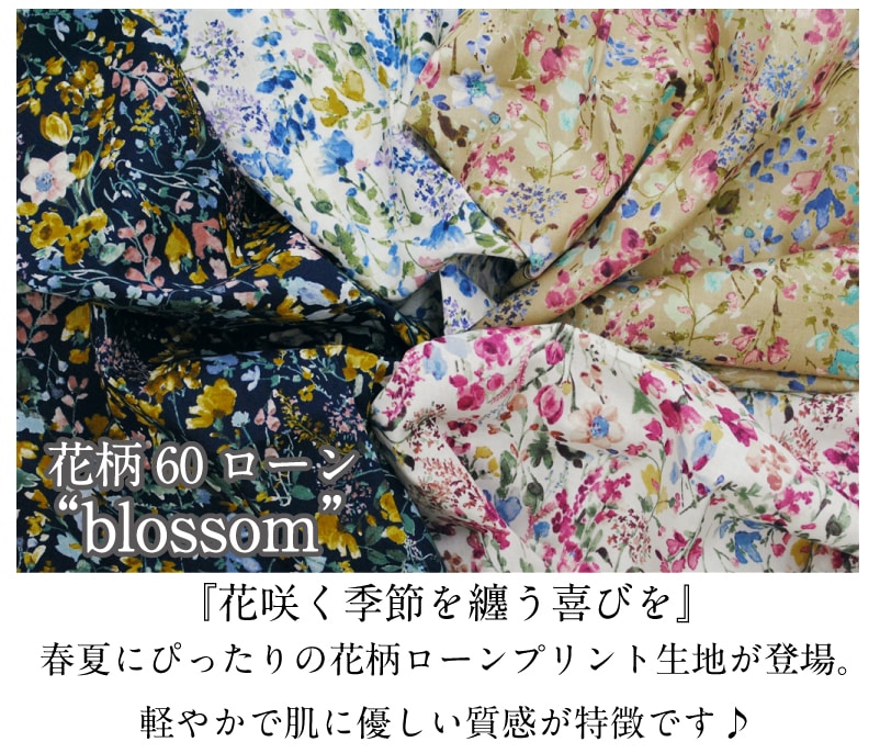 花柄60ローン blossom ブロッサム 生地 綿 コットン 薄手【10】