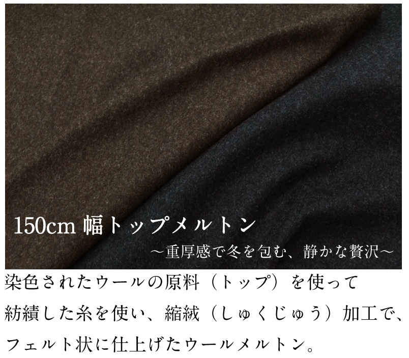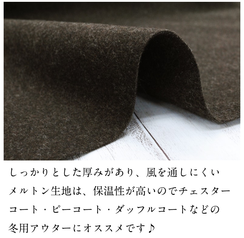 150cm幅トップメルトン 生地 毛 布 ウール ナイロン 秋冬 高級素材 上質 無地 コート 【29】