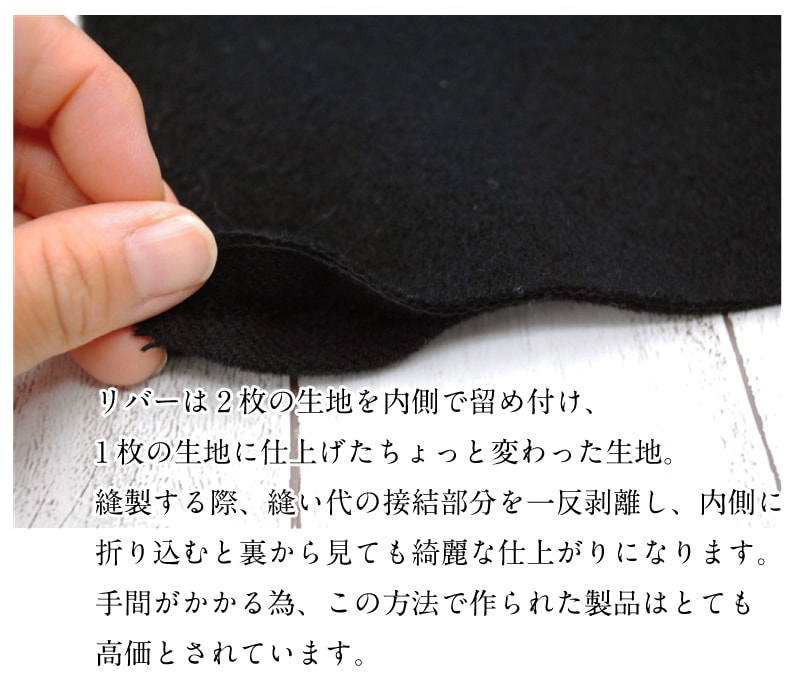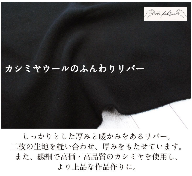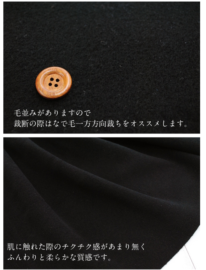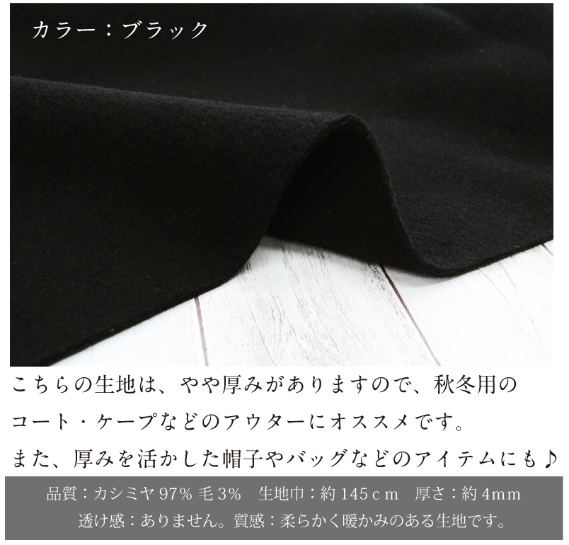 カシミヤウールのふんわりリバー 生地 毛 布 秋冬 高級素材 上質 無地 コート ブラック 黒【29】